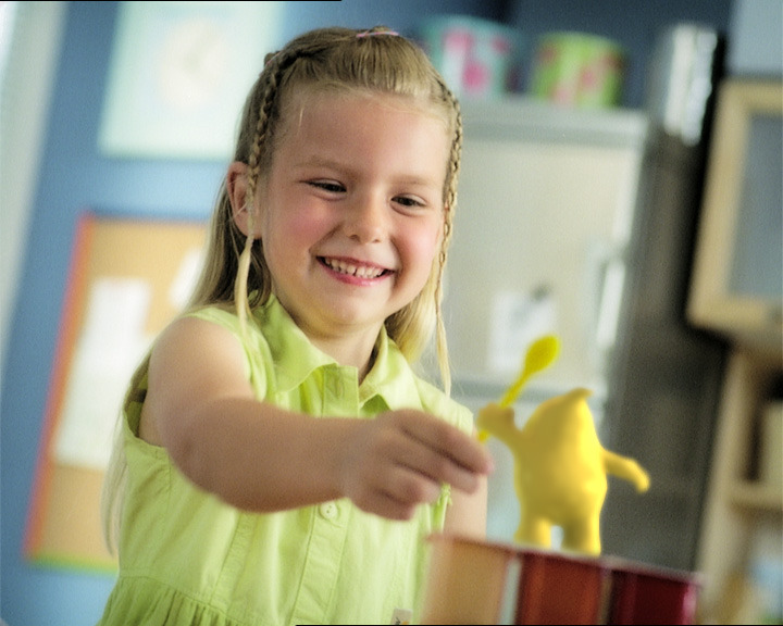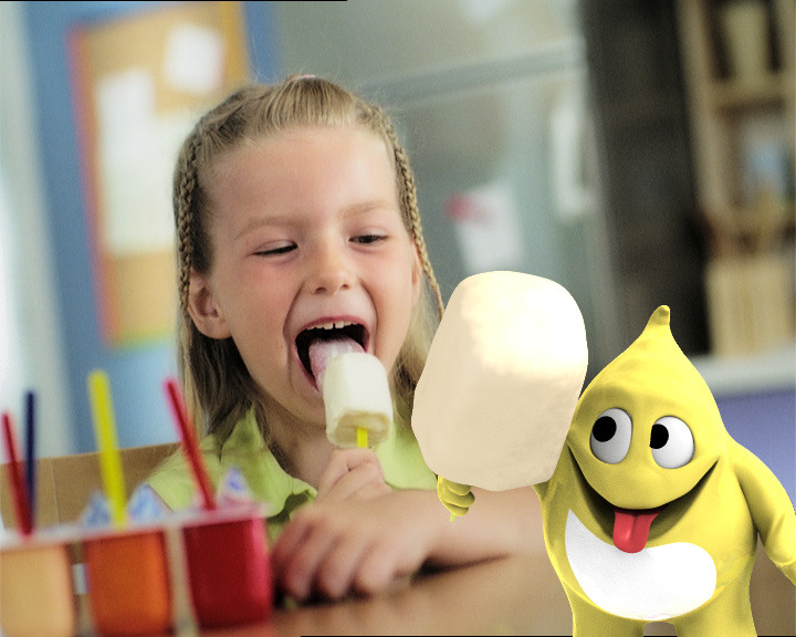 TV commercial for a multifunctional pudding that turns into ice-cream (and back) required a multifunctional approach from the studio crew. The final result, as seen on this page, is a combination of appealing 3D animation and live footage.